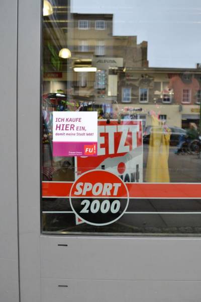 Einkaufen vor Ort und anderswo - Aufkleberaktion in Oberhavel